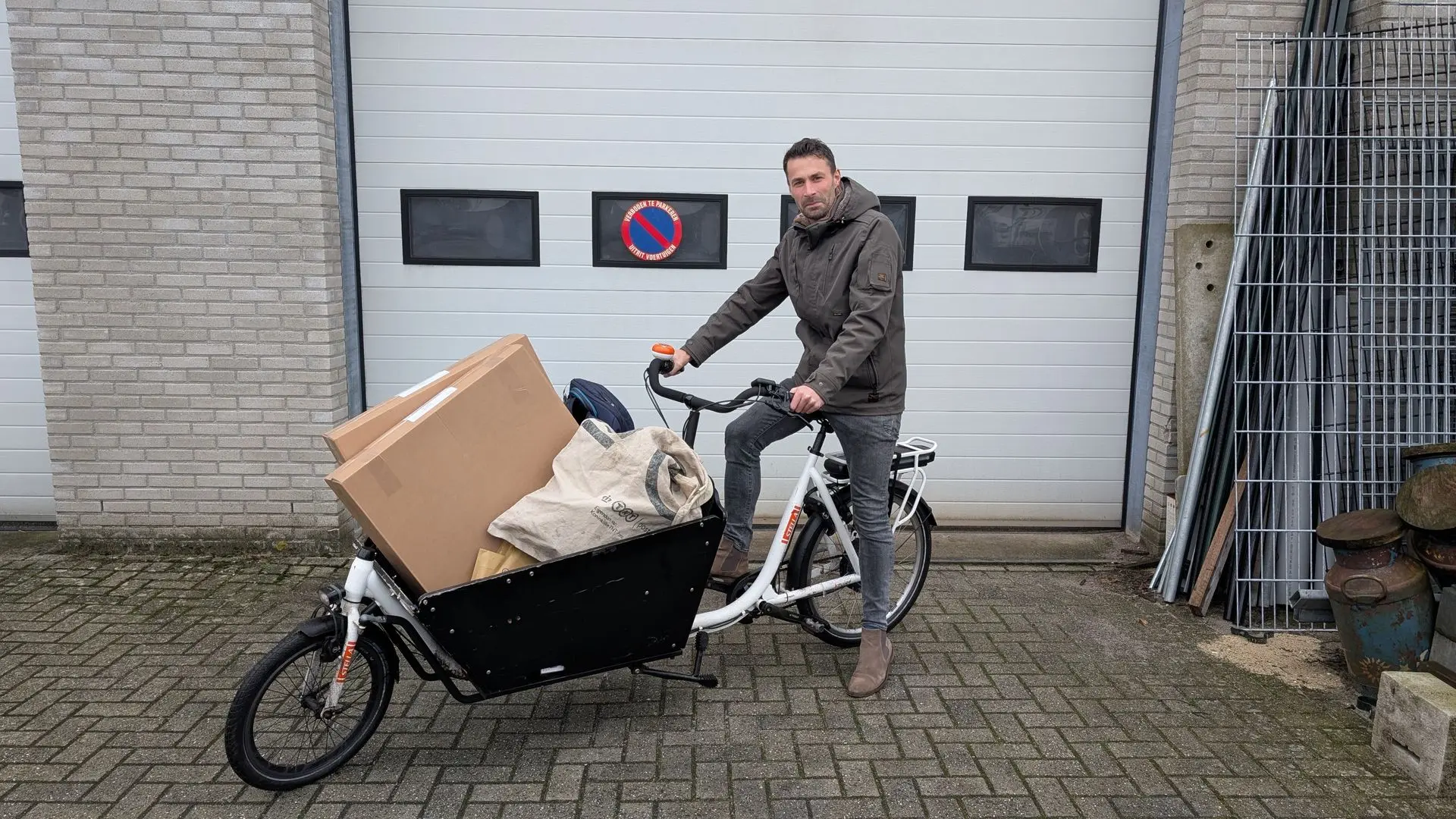 De eerste pakketjes gaan de deur uit. Toen was de bakfiets groot genoeg.